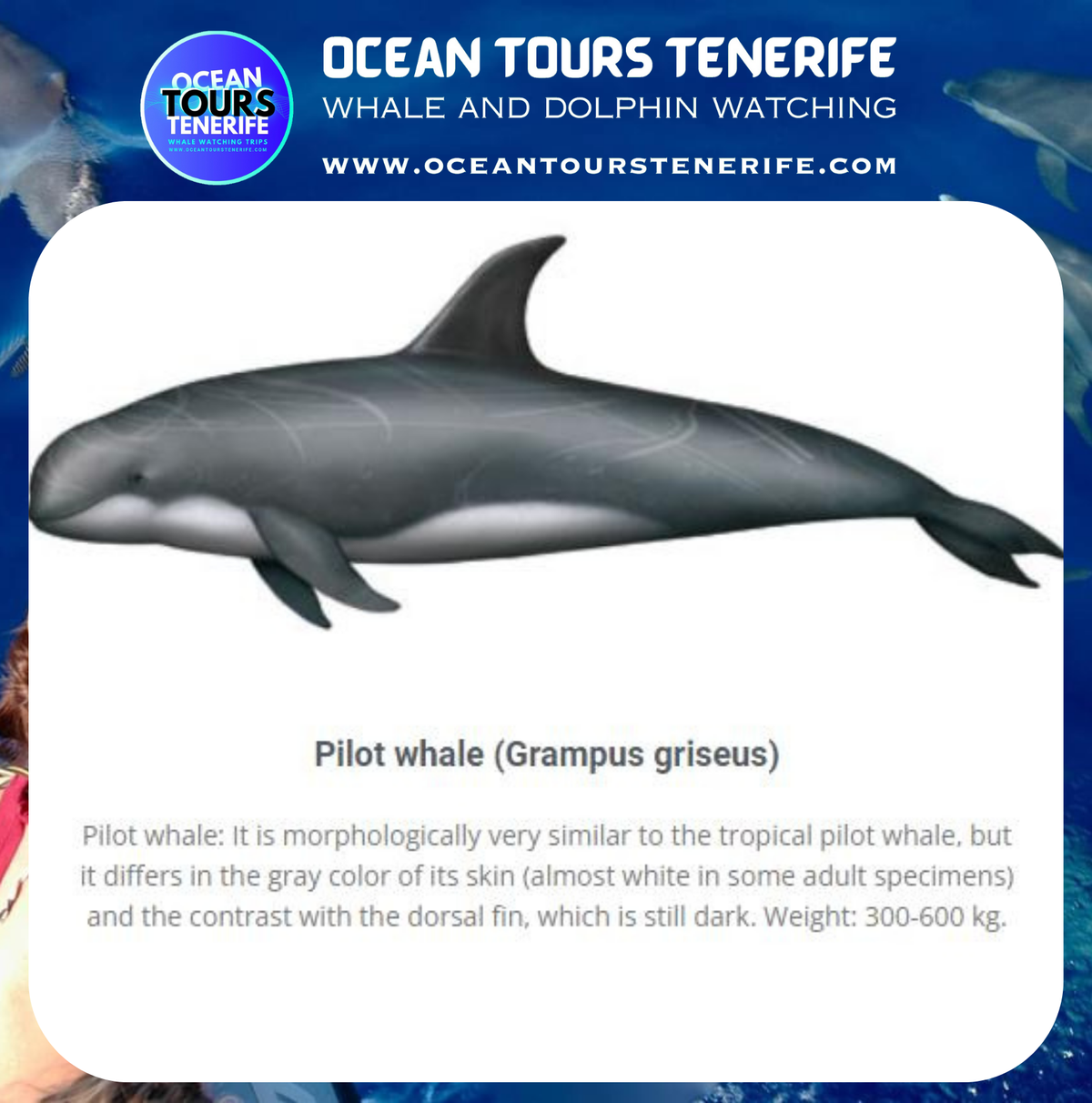 The crews of the oceantourstenerife boats will help you differentiate one species from another in the open sea, since at first glance it can be somewhat complicated for people unfamiliar with these mammals, especially if they are not close to the boat.